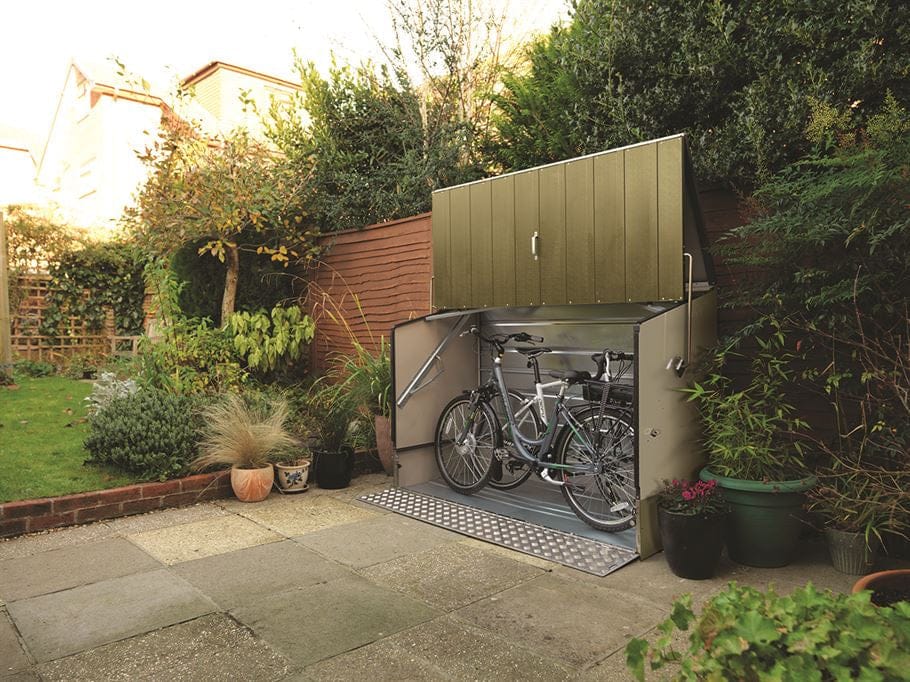 The Bicycle Store with ramp is available in a choice of three colours: cream, anthracite and olive and moorland green. Optional accessories are available to enhance and maximise the useability and security of the unit including wooden flooring, hasps and padlocks, padlocks and a motion-sensing PIR alarm. A non-ramped version of the Trimetals Bicycle Store is also available from My Secure Garden.