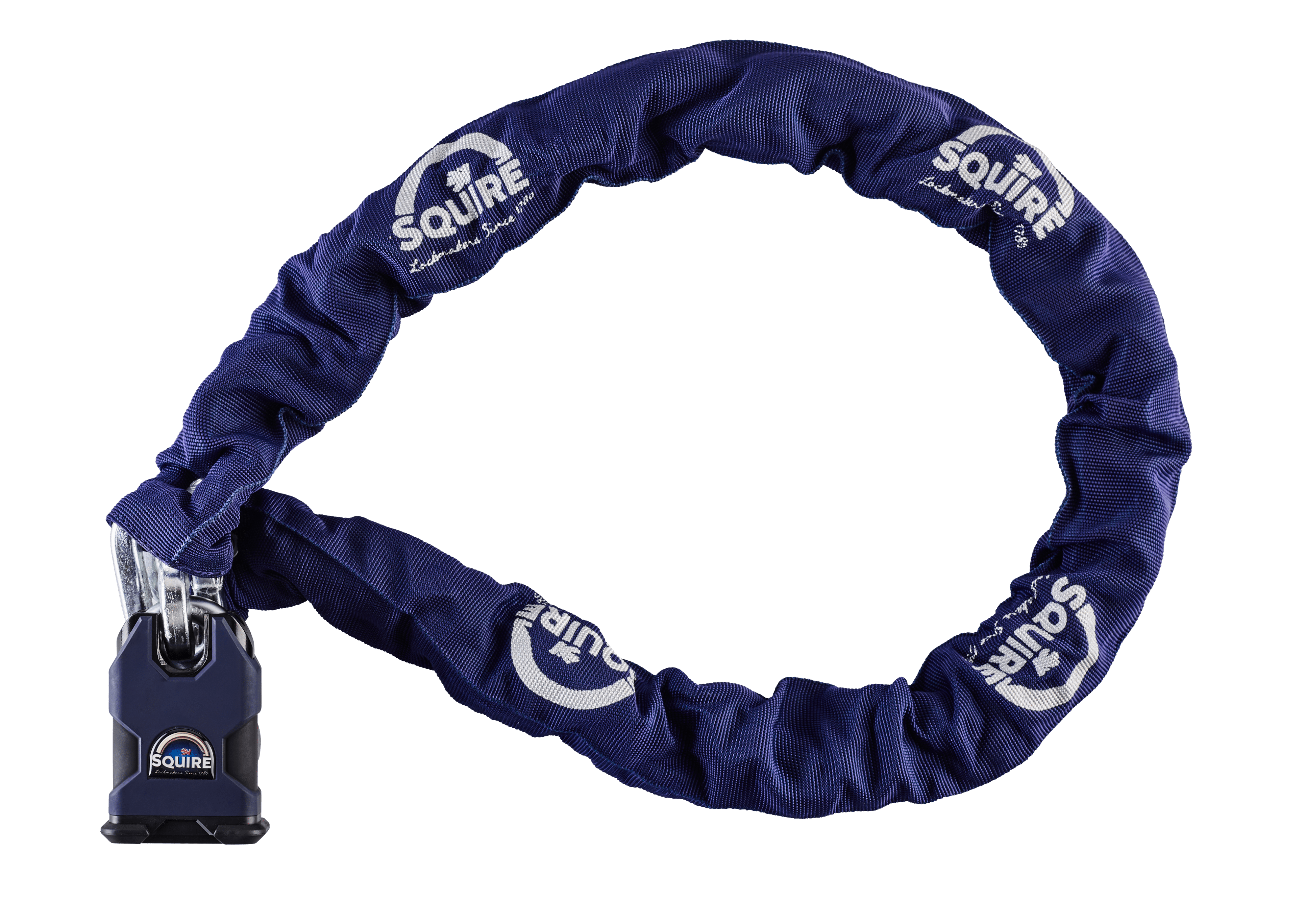 Squire’s Stronghold® SS50CS/G4 high specification padlock and chain set provides an instant security solution for any high valuable items around your property and garden and is ideal for tethering very high value items vulnerable to theft including garden machinery and equipment, motorcycles and bicycles. The SS50CS padlock features a 50mm wide solid hardened steel lock body, and a 10mm diameter hardened boron alloy closed steel shackle, is tested to CEN* Grade 4, and approved by independent accreditation bodies Sold Secure, Secured By Design and the Loss Prevention Certification Board (LPCB)*. The G4 chain is 1200mm in length and features 10mm diameter links covered in a blue protective chain sleeve. The G4 chain achieves Sold Secure Motorcycle Gold approval. Together, the lock and chain set provide a complimentary very high security level which can be combined with Squire’s high security GA6 and GA7 ground anchors and WA300 and WA500 wall anchors to create a comprehensive security solution for very high value outdoor items stored in garages, sheds and outbuildings.