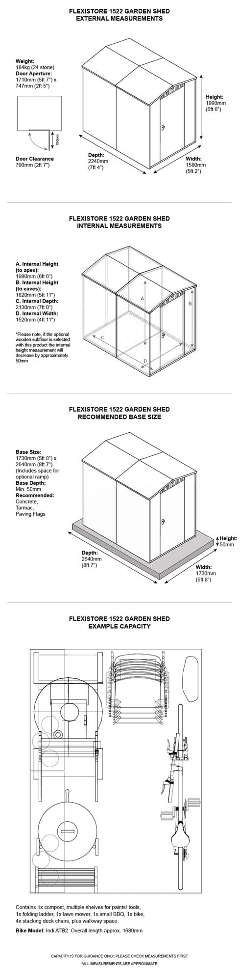 Please note: If the optional wooden subfloor is included the internal height of the unit will decrease by approximately 50mm. | |