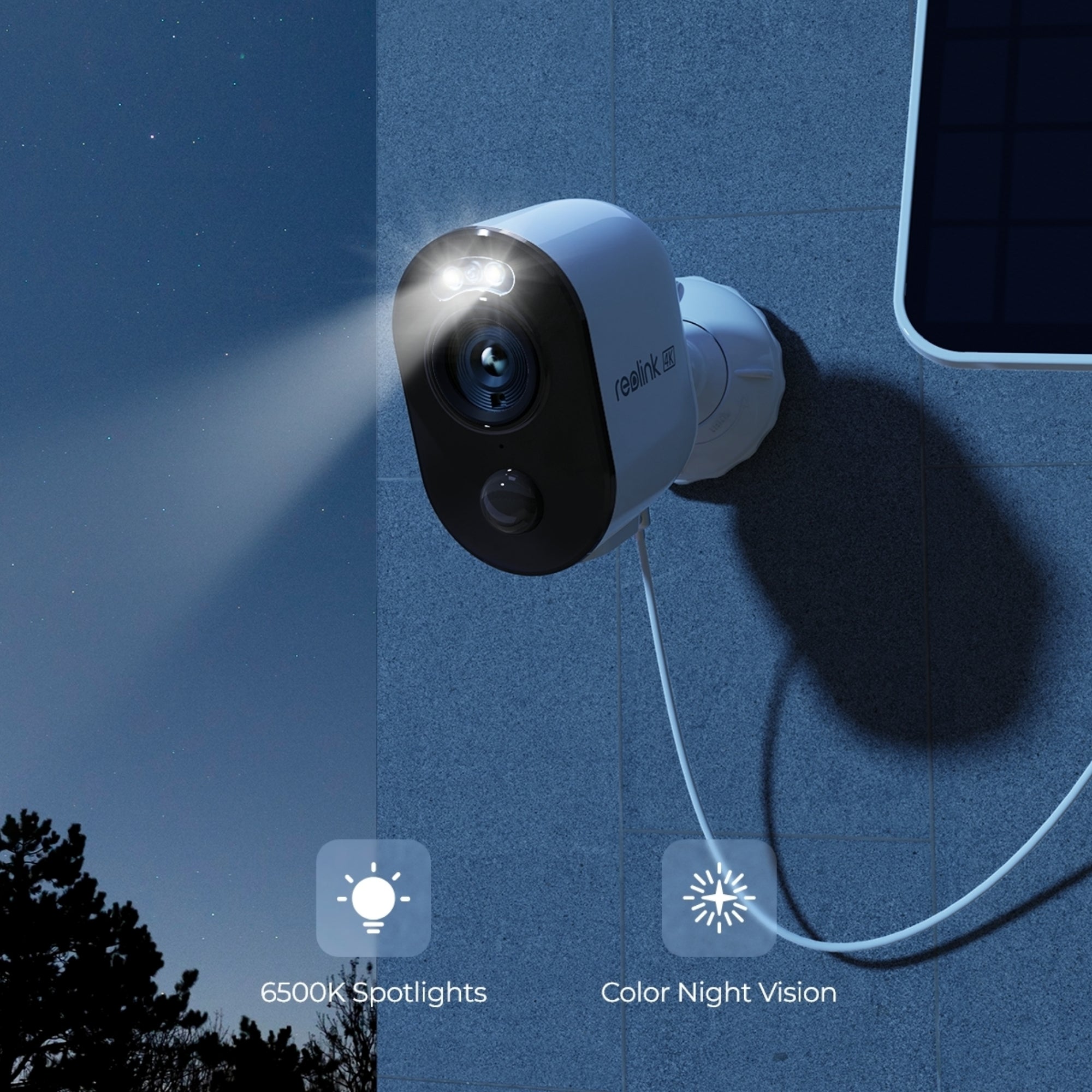 Reolink Argus 3 Ultra 4K Ultra HD security camera with spotlights on