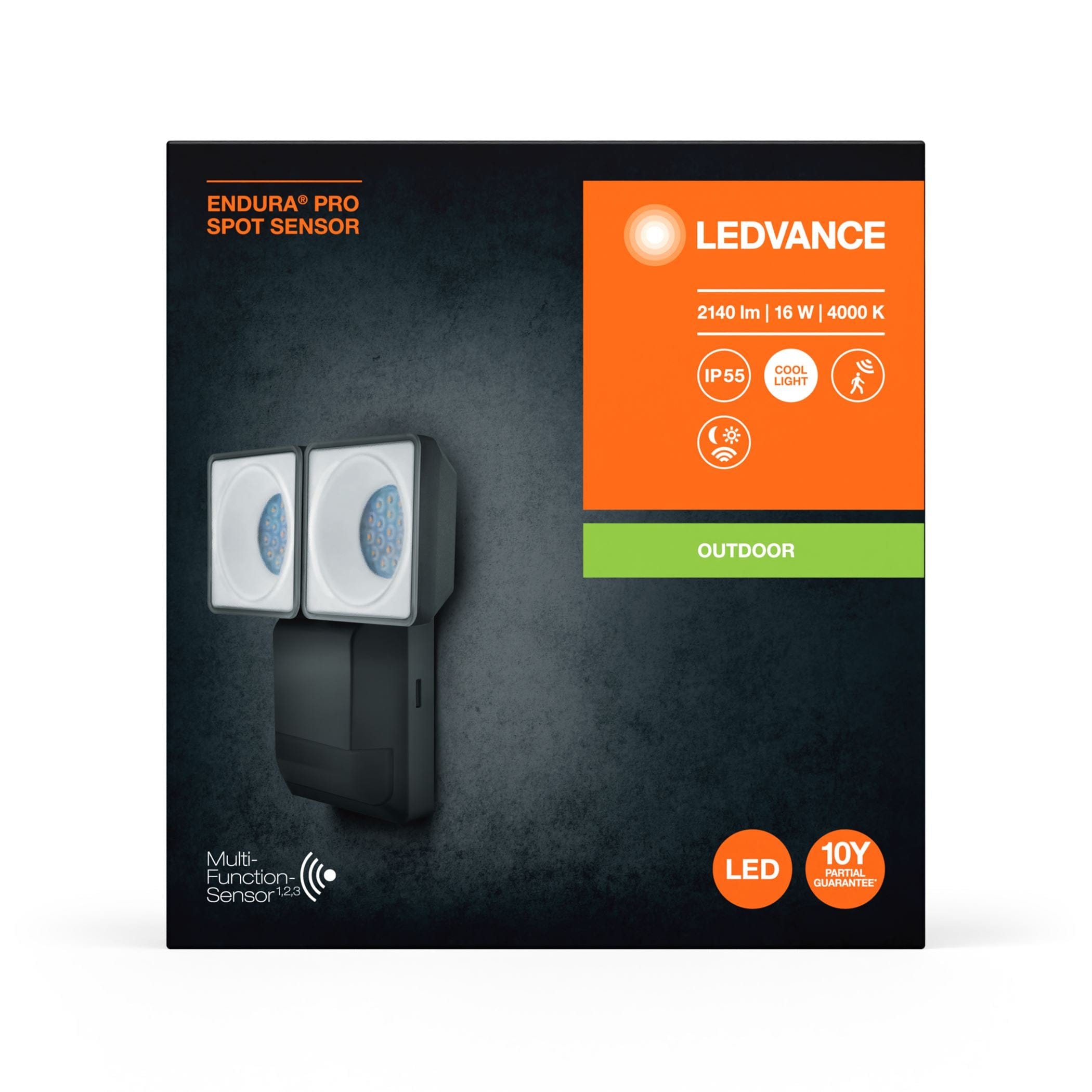 Ledvance Endura Pro Spot Sensor 16W Cool White LED Outdoor Twin Spotlight (Dark Grey)