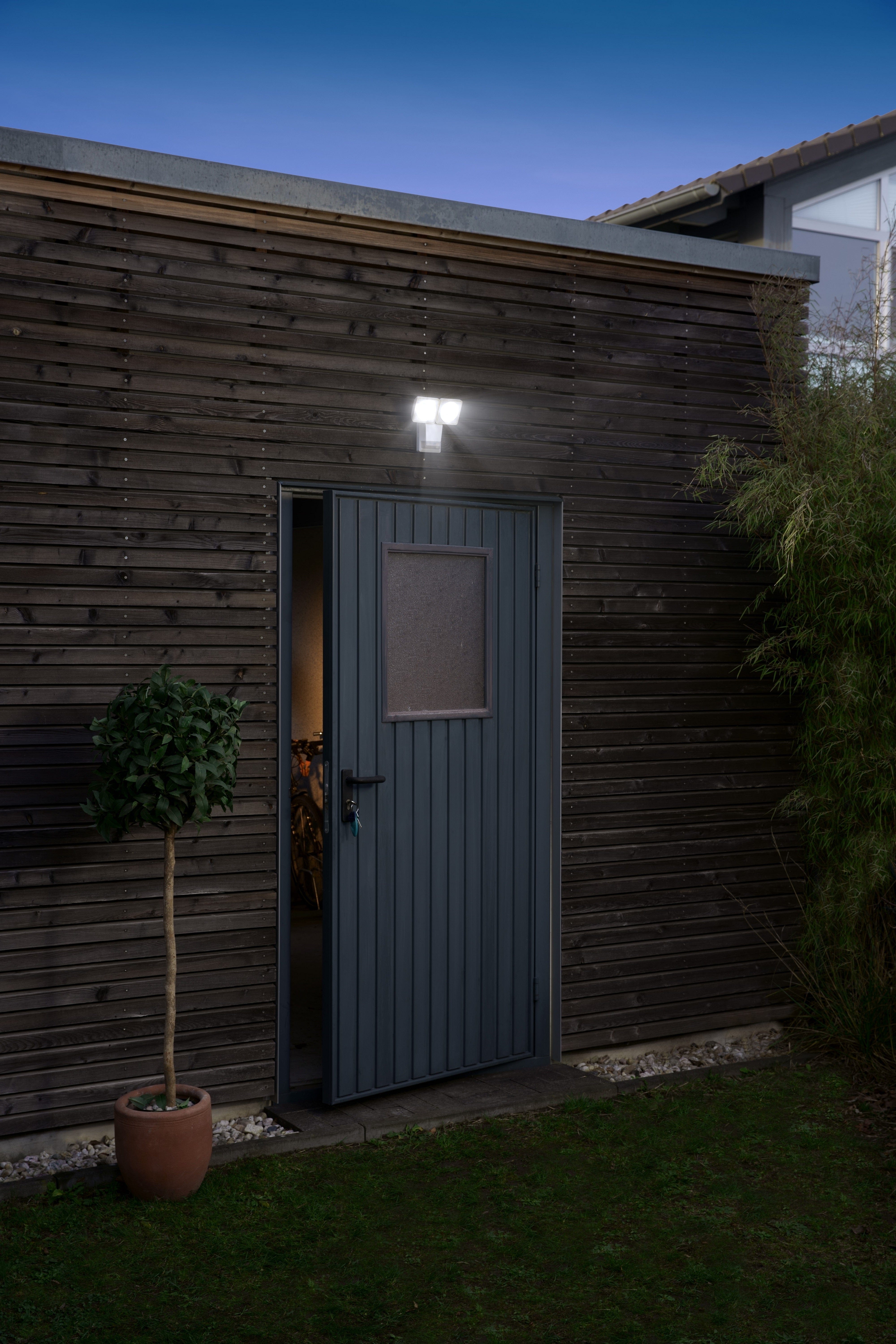 Compact LED outdoor wall spotlight with integrated motion sensor