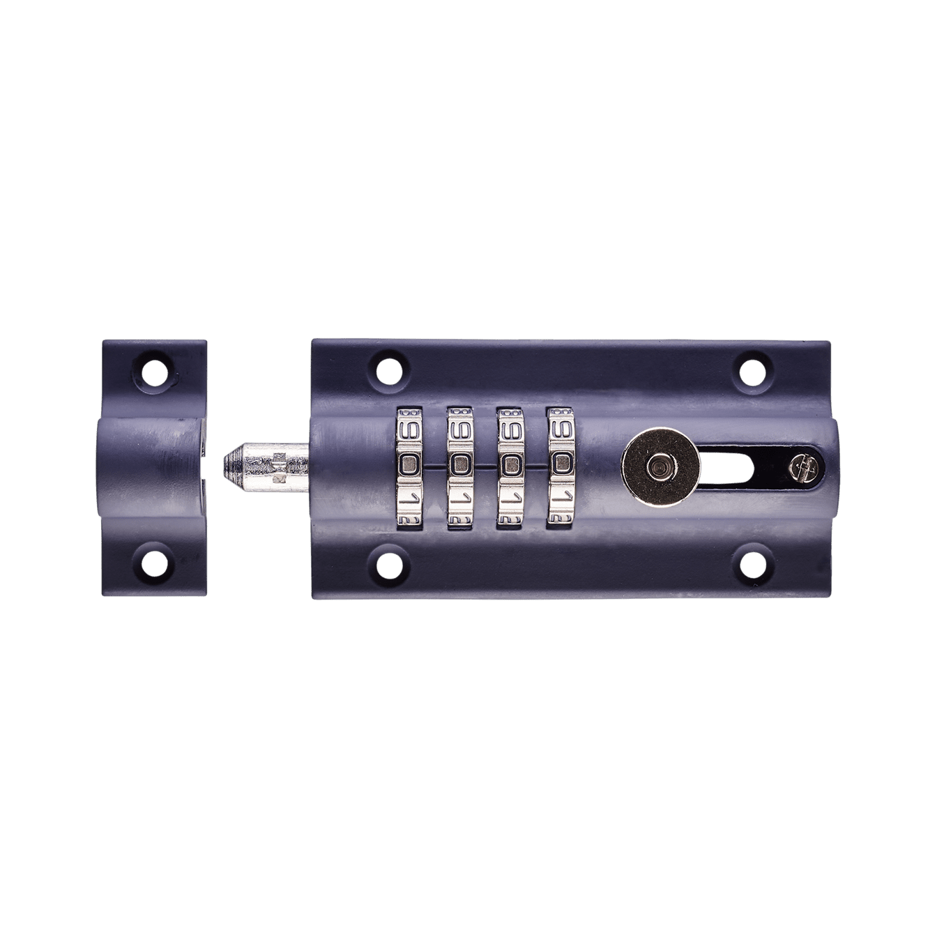 The Combi-4 is a unique, patented, pick-resistant design, with a blue die-cast lock body and steel bolt which is suitable for all weather environments, and a fully recodable four wheel combination lock, offering 10,000 possible combinations, making it versatile and ideal for situations where the key bolt is in frequent use, of the sharing of keys would be problematic or inconvenient. The Combi-4 is also available in a chrome finish.