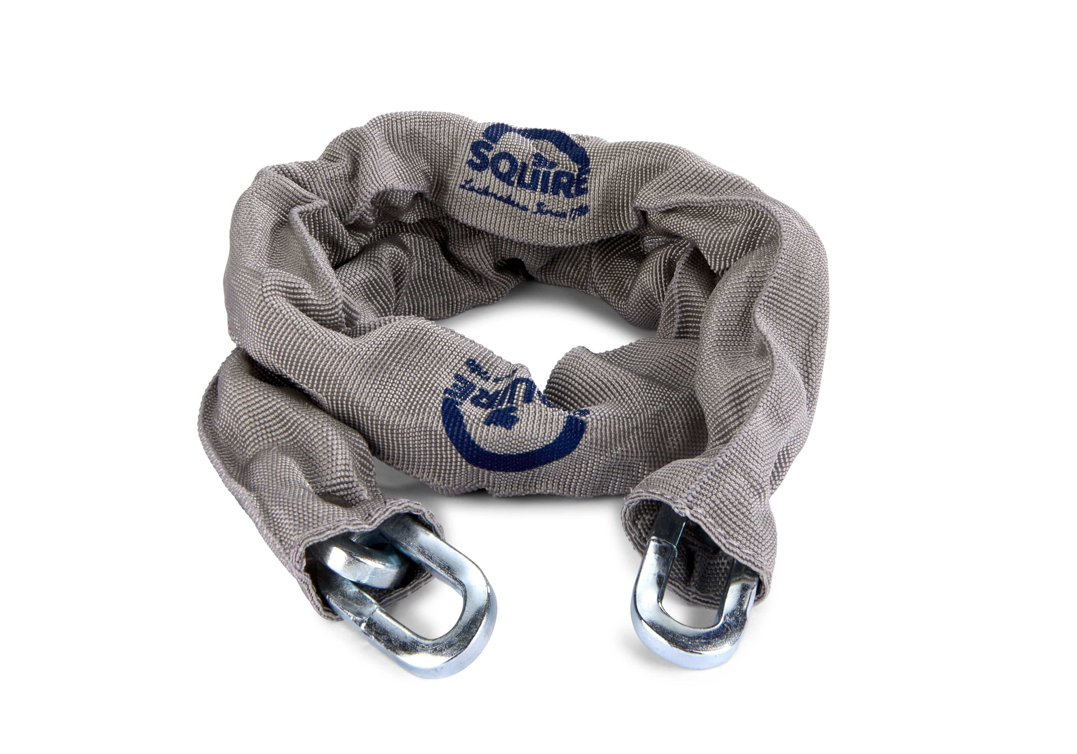 Squire’s Toughlock® CP36P hardened steel chain is 900mm in length and features 6.5mm diameter links covered in a grey protective chain sleeve. The CP36P is a medium-duty chain, making it ideal for securing and tethering valuable moveable items around your property and garden, and helping deter theft.