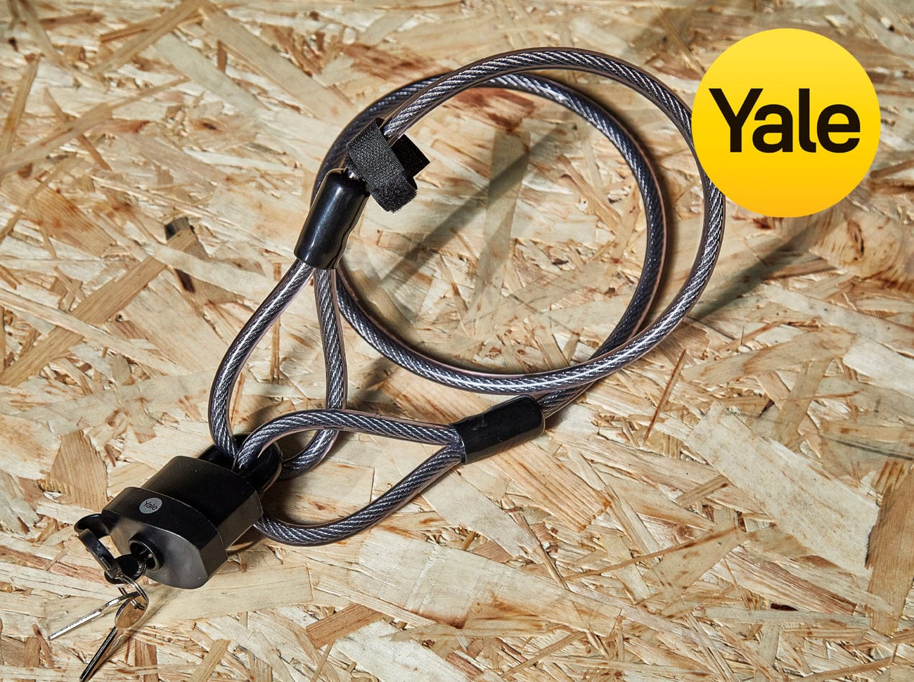 1 x Yale Padlock; and 1 x Yale 1200mm security cable.