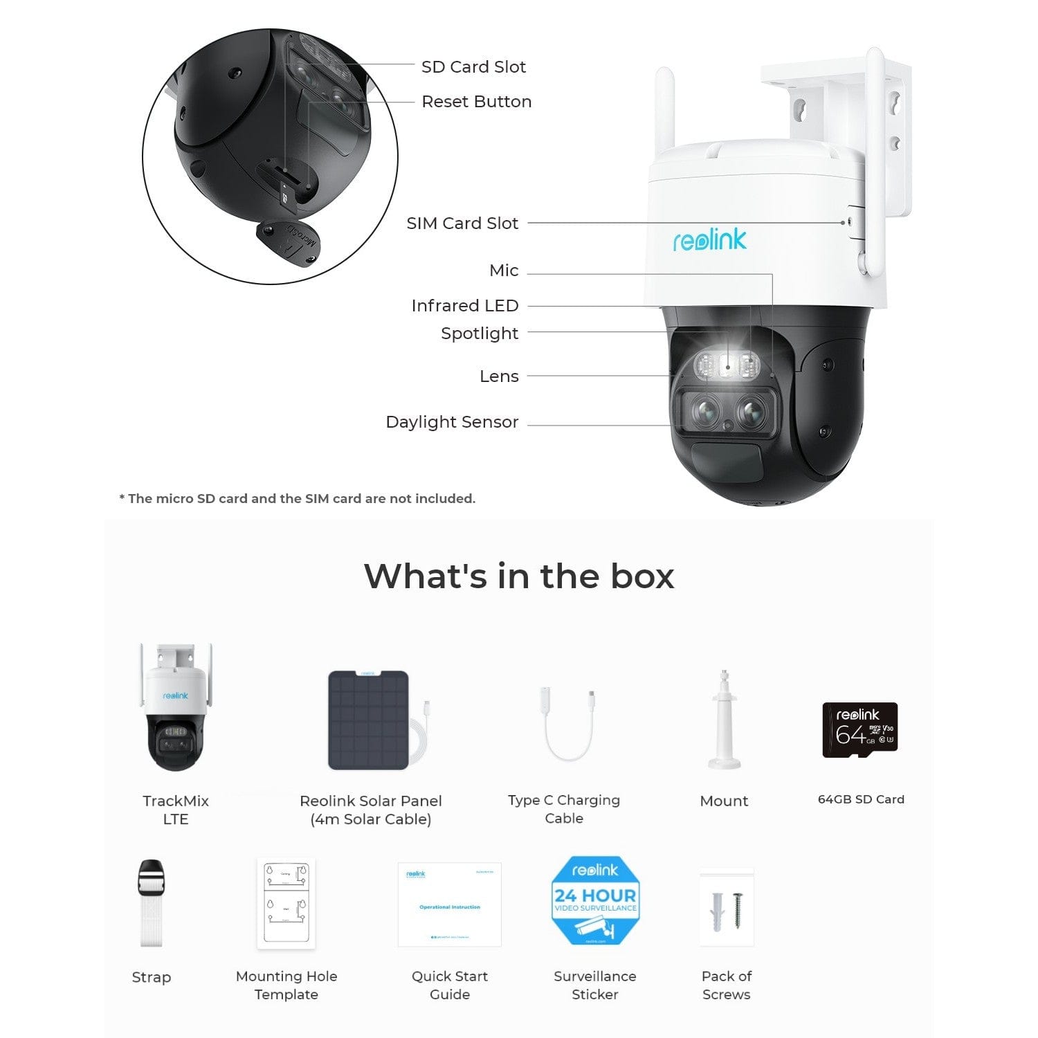 Reolink Advantage Series TrackMix 4G LTE Dual-Lens Auto-Track Solar/Battery Camera Kit + 64GB Card (TM4G4MS2M64-UK)